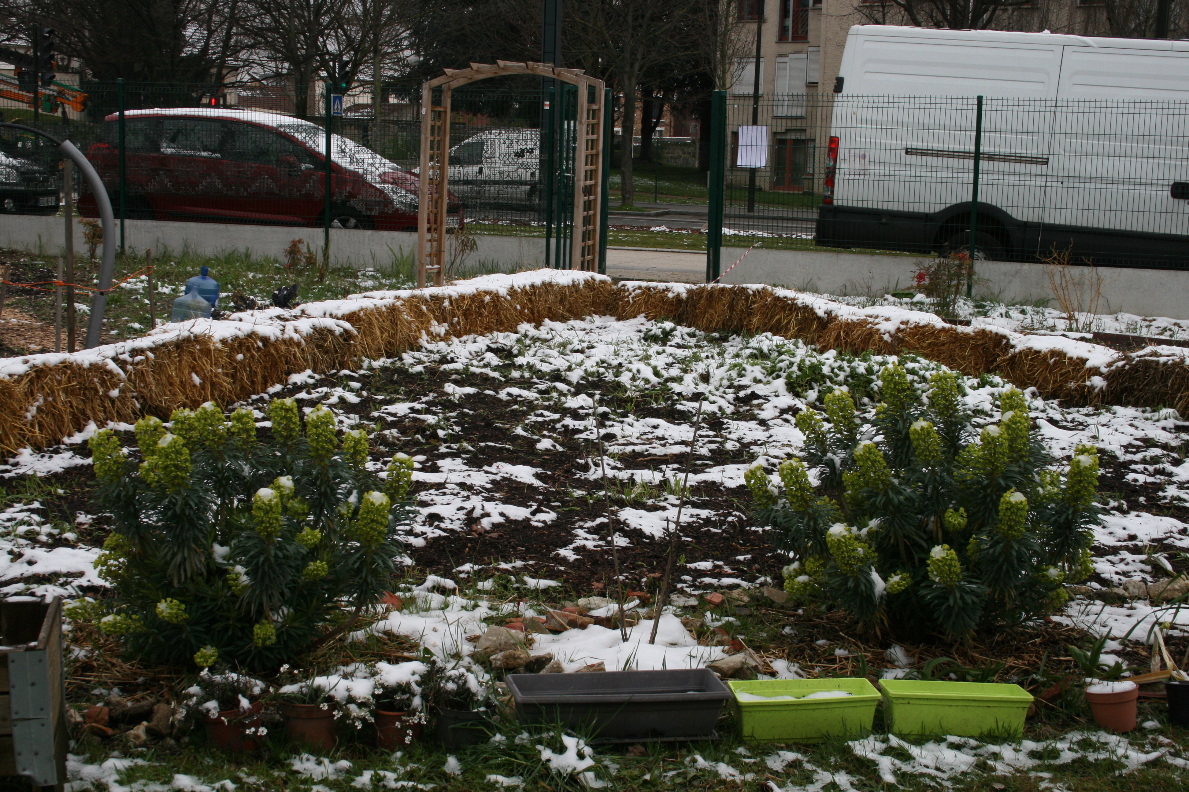 Distribution de graines sous la neige au jardin partagé