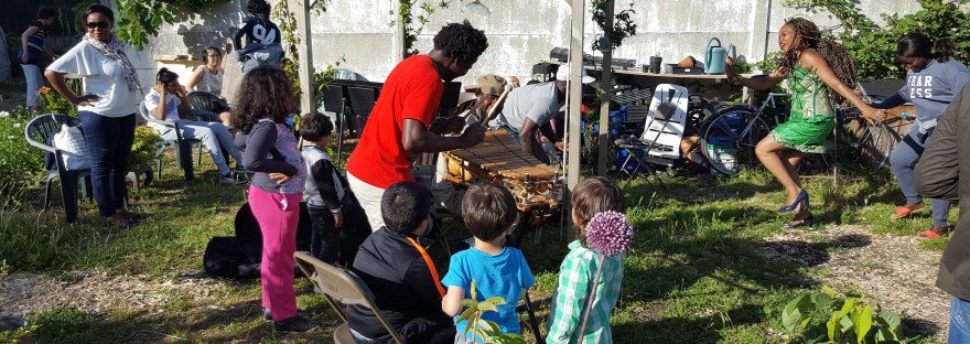 Comme de nombreux événements organisés au jardin, le public était bien présent et beaucoup de familles sont venues partager un beau moment, rythmé par les prestations musicales prévues et improvisées, aux sonorités diverses. Les légumes et les fleurs en plein épanouissement ont dû apprécier ! Quant au collectif, toujours au RDV pour animer le jardin et accueillir les populations, il a proposé un repas avec des réjouissances culinaires de plein de pays, un régal.