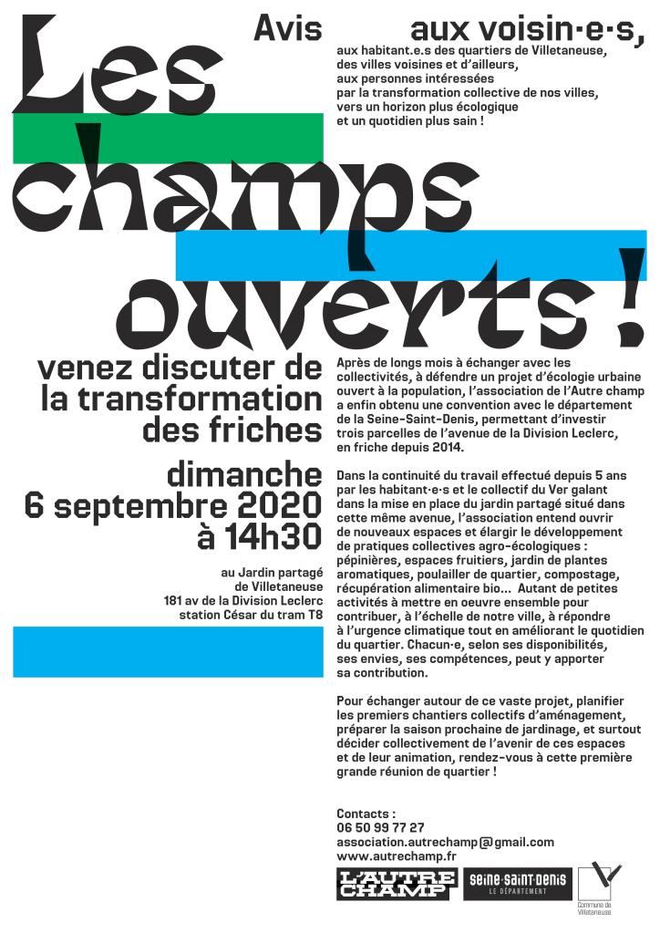 Après de longs mois à échanger avec les collectivités, à défendre un projet d’écologie urbaine ouvert à la population, l’association de l’autre champ a enfin obtenu une convention, passée avec le Département de la Seine-Saint-Denis, permettant d’investir trois parcelles de l’avenue de la Division Leclerc, en friche depuis 2014.