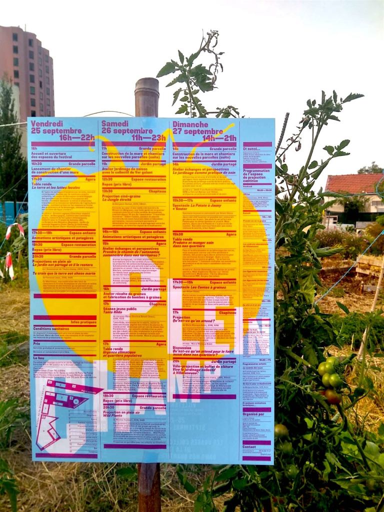 Composé de projections, d’ateliers jardinage, de discussions, de chantiers, d’espaces de partage de ressources, l’ensemble du programme est traversé par les préoccupations écologiques actuelles (urgence climatique, production locale, préservation de la biodiversité, inégalités environnementales, lutte contre les gaspillages, cadre de vie et pratiques de soin,…), telles qu’elles peuvent se décliner dans les contextes des quartiers populaires.