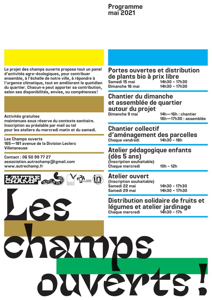 Le projet des champs ouverts propose tout un panel d’activités agroécologiques à mettre en œuvre ensemble pour contribuer, à l’échelle de notre ville, à répondre à l’urgence climatique tout en améliorant le quotidien du quartier. Chacun·e, selon ses disponibilités, ses envies, ses compétences, peut apporter sa contribution !