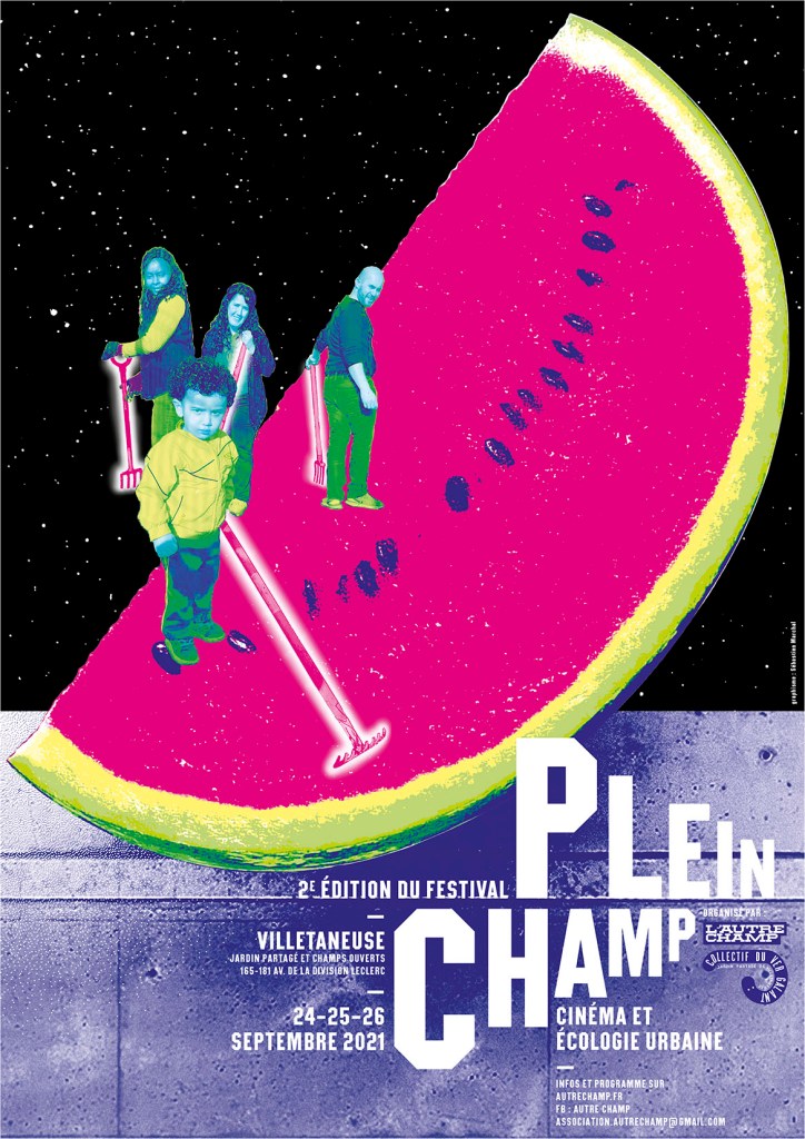 Après une première édition qui a montré tout le potentiel de cette initiative (lien bilan : https://autrechamp.fr/2020/10/12/une-premiere-edition-pleine-de-perspectives/), le Festival Plein champ 2021 est sur les rails ! Concentré sur 3 jours, les 24, 25 et 26 septembre prochains à Villetaneuse (93), cet événement propose une programmation mêlant cinéma et écologie sociale, au sein de jardins et d’espaces dédiés à l’agro-écologie et à la participation des habitant.e.s.
