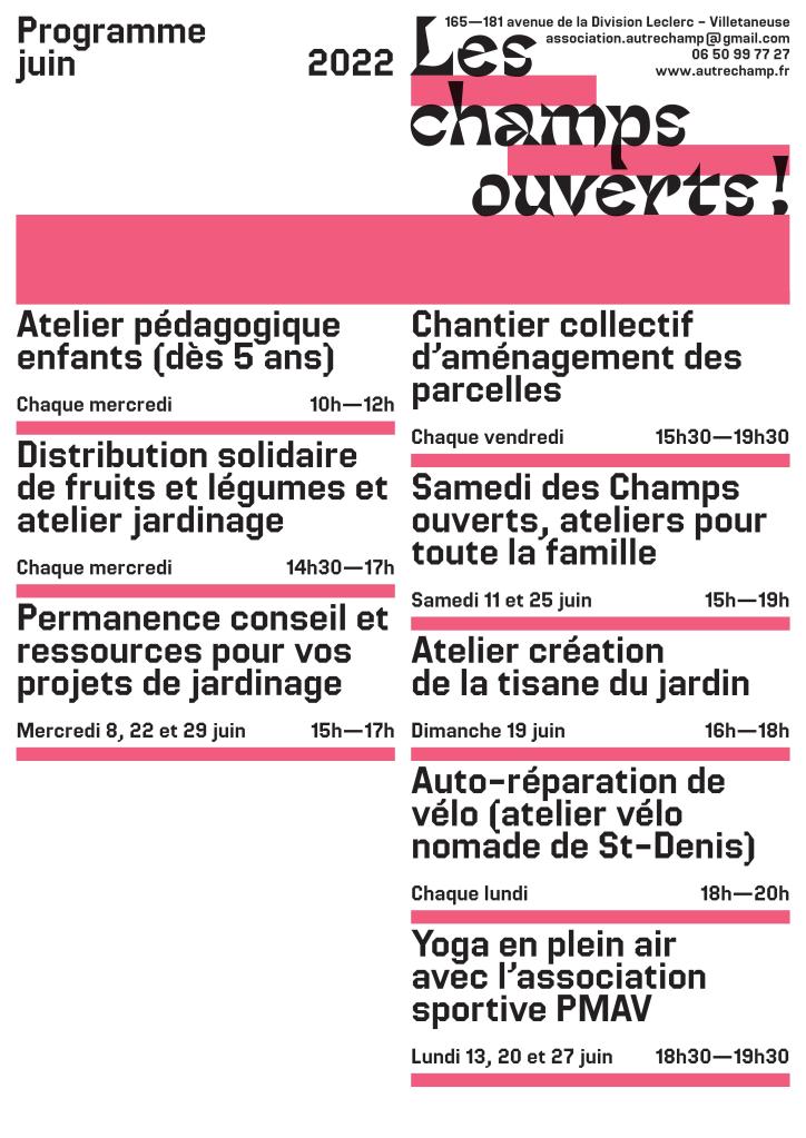 Tous les temps du programme sont ouverts gratuitement à toutes et tous, n’hésitez pas à faire circuler les infos et à très vite aux champs ouverts !