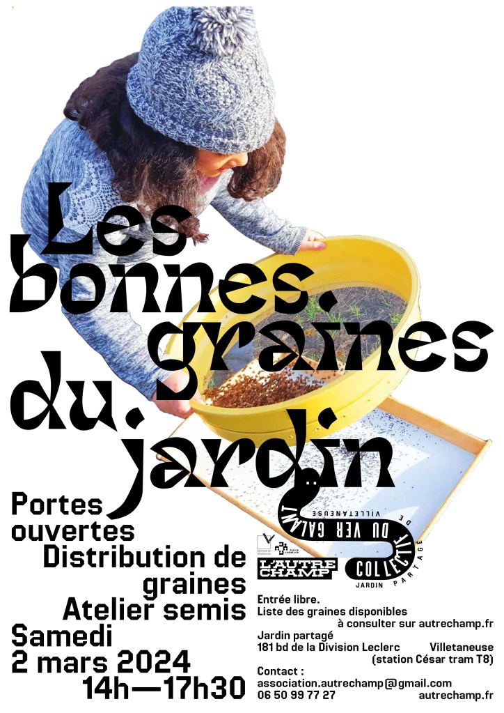 Ce samedi 2 mars nous aurons de nouveau le plaisir de vous accueillir aux Champs Ouverts pour la première journée portes ouvertes de l’année et la grande distribution de graines, désormais traditionnelle dans nos jardins chaque année! (graines vendues à prix libre). Ces graines ont été soigneusement récoltées par petits et grands tout au long des saisons précédentes et vous garantissent des variétés parfaitement adaptées et 100% reproductibles.