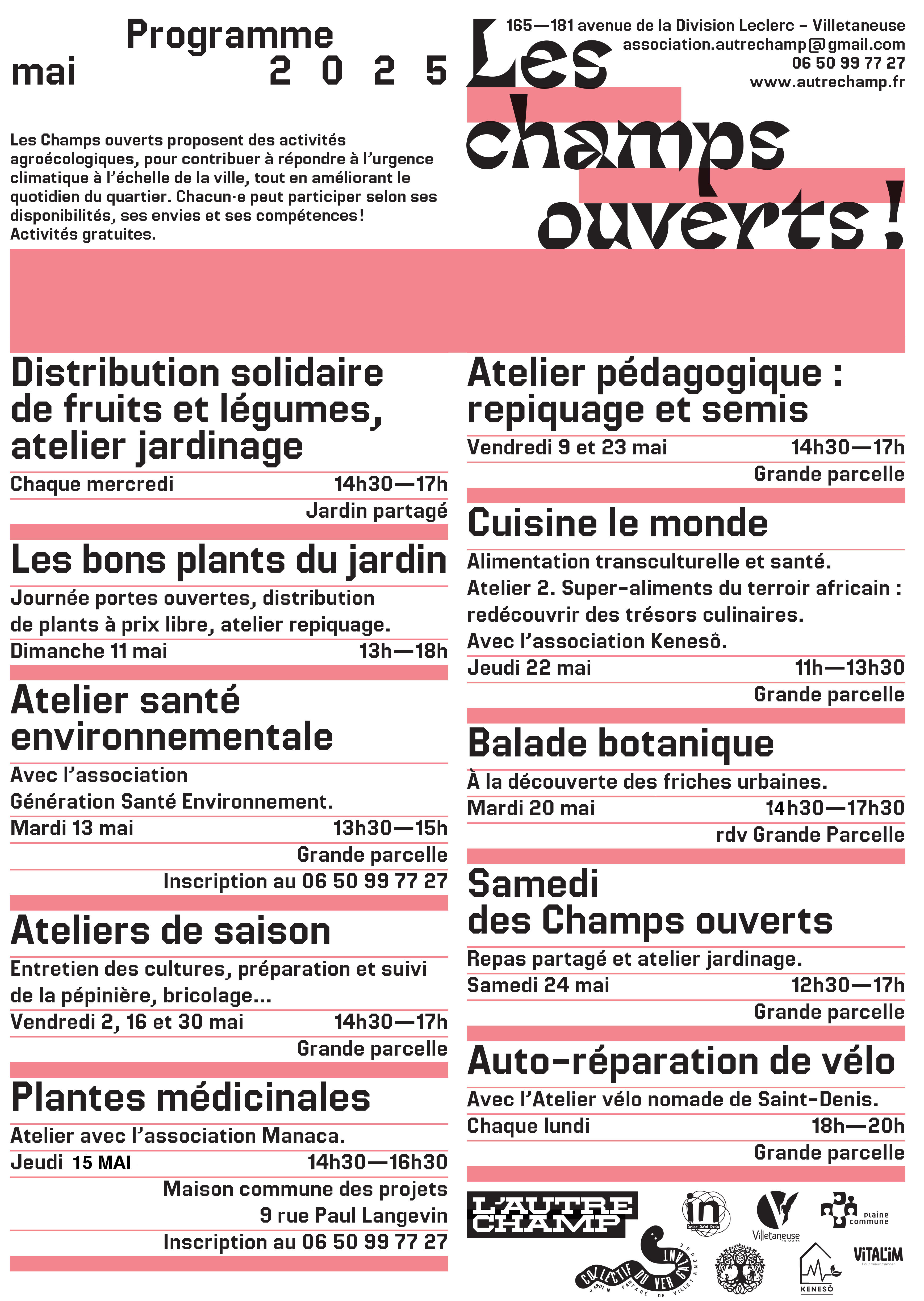 Et puis comme d’habitude, on se retrouve aussi tous les mercredis pour la distribution de grosses cagettes de fruits et légumes issus de récupération de Rungis, animé par le collectif du Ver Galant. Les champs sont ouverts, on vous attend !
