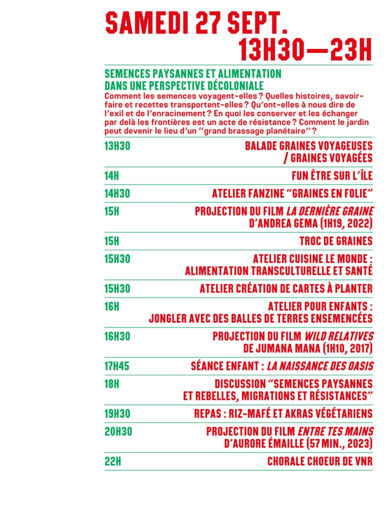 Mais quel est ce légume que l’on peut voir coupé sur l’affiche du festival ? Suspens ! L’un des thèmes du festival concerne l’Alimentation et les Semences dans une perspective décoloniale alors il sera l’occasion de découvrir les graines, fruits et légumes que vous n’avez encore jamais vu ni goûté