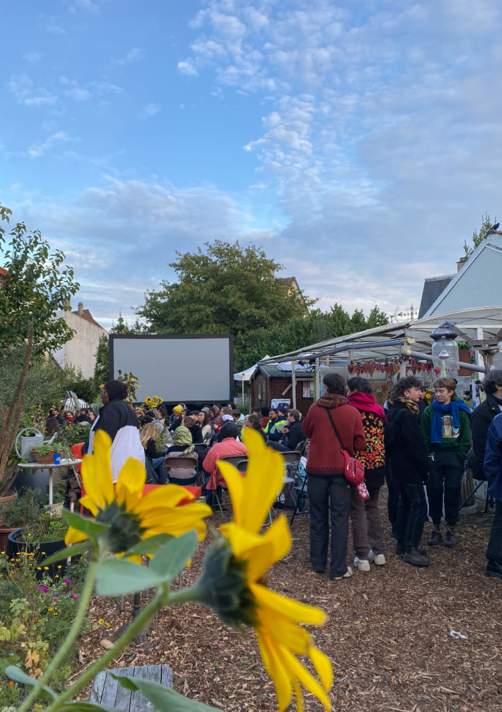 Cette année encore, ce festival articulant cinéma et écologie populaire et décoloniale a rassemblé de nombreux.ses habitant.es du quartier et des alentours, collectifs et associations autour d’une programmation mêlant projections, discussions et pratiques collectives en tout genre et pour tous les publics, au sein d’espaces dédiés à l’agro-écologie participative dans les quartiers sud de la commune de Villetaneuse. Véritable temps fort de l’année pour l’association, ce festival est un condensé de ce qu’elle s’efforce de construire tout au long de l’année : des espaces collectifs de transmission, de partage et de réappropriation des savoirs, portés par une écologie populaire et un cinéma de proximité, tous deux ancrés dans les réalités locales.