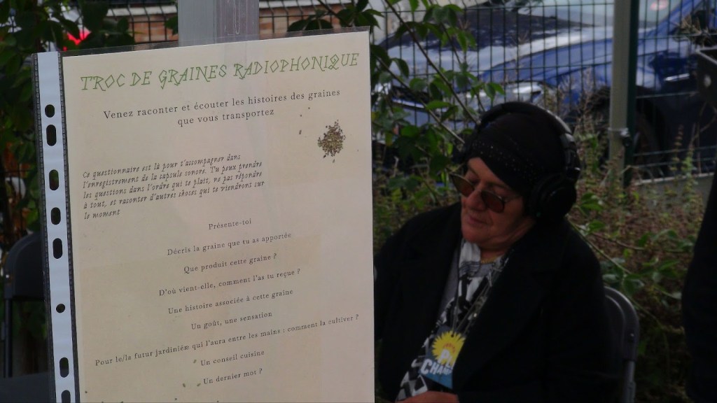 En parallèle, le nouvel espace “Radio tout terrain”, sous le pommier de l’amitié du jardin partagé, a permis de créer un dispositif inédit : un troc de graine radiophonique sur toute l’après-midi. À cette occasion, de nombreuses semences voyageuses ont été contées, écoutées, échangées… Un puzzle de ces échanges est à écouter ici.